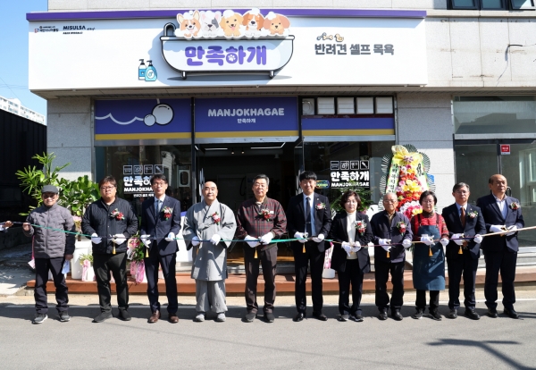 군은 지난 14일 태안읍 동문리에서 가세로 군수 및 군의원을 비롯해 태안시니어클럽 한선규 관장, 충남도 노인일자리통합지원센터 김정호 센터장 등 30여명이 참석한 가운데 반려견 셀프목욕 전문 매장인 ‘만족하개’ 개소식을 가졌다고 밝혔다.