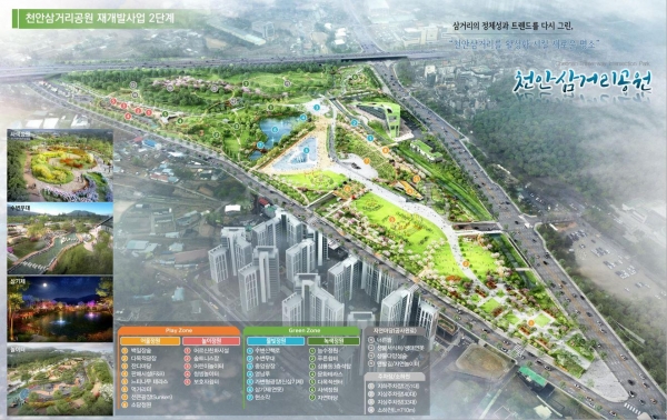 앞서 지난해 9월 천안삼거리공원 재개발 1단계사업인 지하주차장 설치, 삼거리소하천 정비, 자연마당 조성 등을 완료했다.
