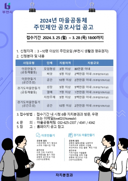 부천시, ‘2024년 마을공동체 주민제안 공모사업’ 참여자 모집