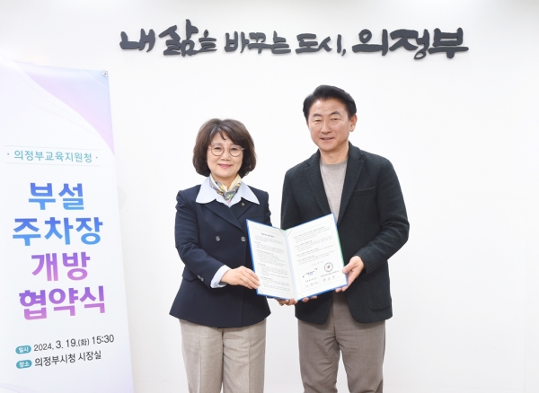[금요저널] 의정부시는 3월 19일 지역주민들의 주차 편의를 위해 의정부교육지원청과 부설주차장 개방협약을 체결했다.