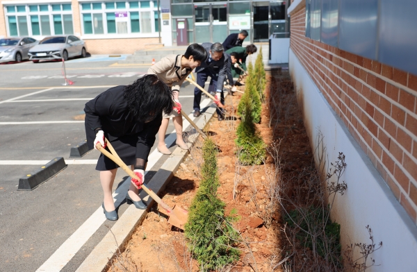 [금요저널] 아산교육지원청은 3월 20일 오전, 청사 내 정원과 화단에서 전 직원이 참여한 청렴·식목 캠페인을 성공적으로 진행했다.