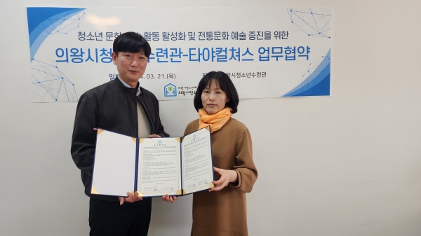 [금요저널] 의왕시청소년재단 의왕시청소년수련관은 지난 21일 청소년 문화·예술증진 및 전통문화 활성화를 위한 네트워크 구축을 위해 국악연희 타야컬쳐스와 업무협약을 체결했다고 밝혔다.