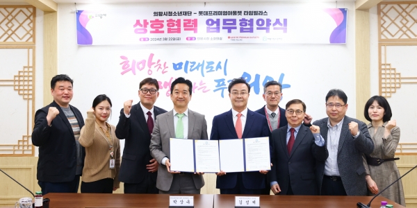 협약식에는 의왕시청소년재단 김성제 이사장, 원억희 대표이사, 롯데프리미엄아울렛 타임빌라스 박상옥 점장 등 관계자 10여명이 참석했다.