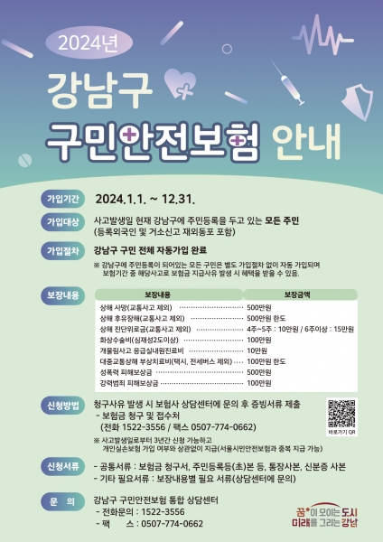 강남구에 주민 등록된 사람은 모두 구민안전보험에 자동 가입된다.