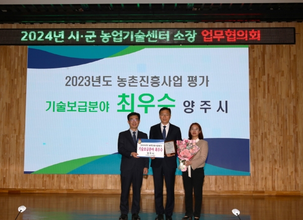 [금요저널] 양주시는 지난 27일 경기도농업기술원에서 주최한 ‘2023 농촌진흥사업 평가 분야별 우수사례’에서 기술보급분야 최우수기관으로 선정됐다고 밝혔다.