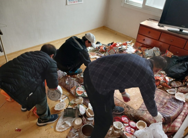 해당 가구는 독거노인 가정으로 오랫동안 방치된 쓰레기, 폐기물 및 벌레로 인해 악취가 심하고 주변 이웃들의 위생과 일상생활 피해까지 우려되는 상황이었다.