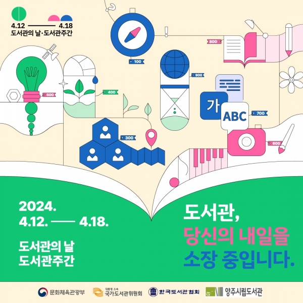 [금요저널] 양주시립도서관은 2024년 제60회 도서관 주간을 맞아 ‘도서관, 당신의 내일을 소장 중이다’라는 주제로 작가 초청, 공연, 체험행사, 전시 등 다채로운 독서 문화행사를 마련했다.