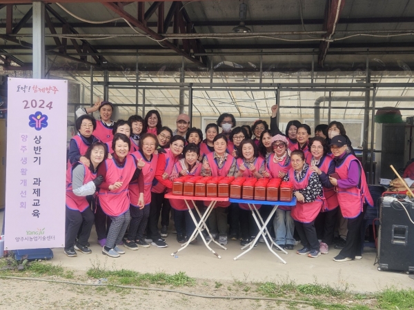 [금요저널] 양주시가 지난 11일 관내 두레 농원에서 관내 양주동생활개선회 회원 41명이 참석한 가운데 ‘2024년 양주생활개선회 상반기 과제교육’을 시행했다고 밝혔다.