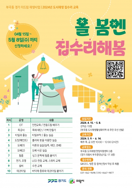 [금요저널] 의왕시가 ‘2024년 도시재생 집수리 교육’ 참여자를 5월 8일까지 모집한다.