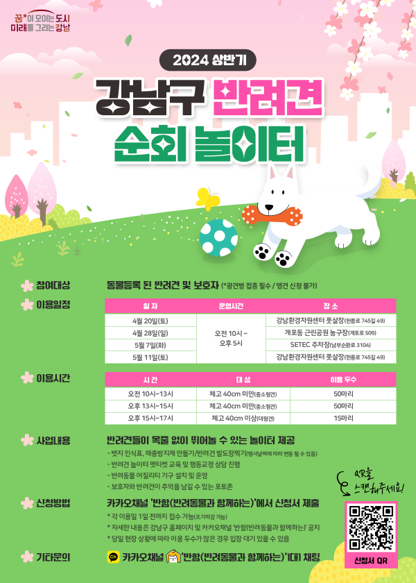 [금요저널] 꿈이 모이는 도시, 미래를 그리는 강남구가 오는 4월 20일부터 4회에 걸쳐 반려견 순회 놀이터를 운영한다.