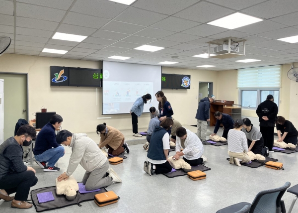 주요 교육 내용은 ▲가슴압박 심폐소생술 ▲자동심장충격기 사용법 ▲최초 발견자의 신속한 심폐소생술 중요성 등 실제 상황에서 도움이 되는 실습 위주로 진행됐다.