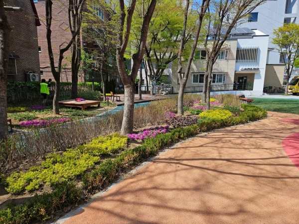 특히 공원 주변을 둘러싼 꽃길 순환 산책로에 따라 벤치, 평상 등을 배치해 어른들이 산책과 휴게를 즐기면서 아이들의 모습을 지켜볼 수 있는 자연감시 기능을 더해 범죄예방 효과도 있다.