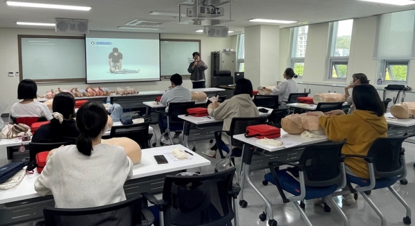 구체적으로 ▲안전조치 및 응급처치의 필요성 ▲심정지환자의 반응 확인 방법 ▲도움 및 119신고 요청 ▲성인 및 소아의 심폐소생술 방법 및 실습 ▲자동심장충격기 사용법 ▲영아의 심폐소생술 방법 및 기도폐쇄 처치 ▲개인별 평가로 이뤄졌다.