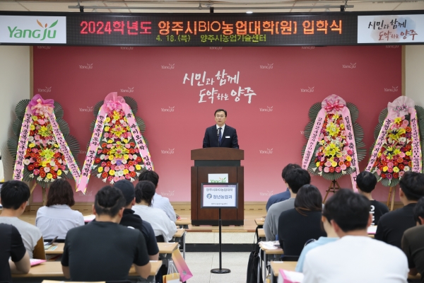 [금요저널] 양주시는 지난 18일 양주농업을 스마트 시대에 걸맞은 농업으로 혁신하고 21세기 농업을 선도할 최고의 전문농업인 육성하기 위해 양주시농업기술센터에 설치한 ‘양주시BIO농업대학’의 2024년 입학식을 개최했다고 밝혔다.