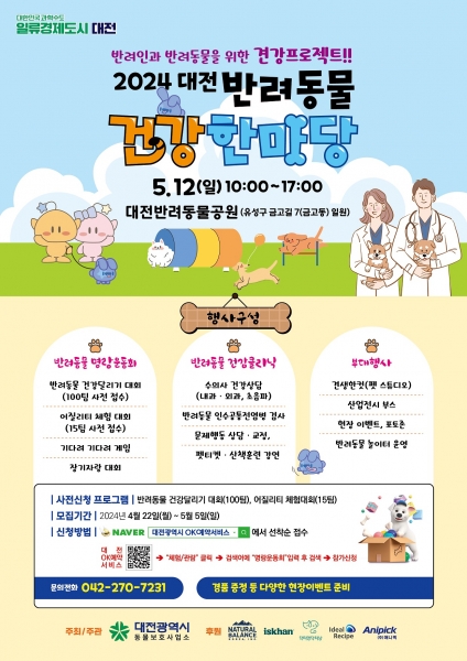 [금요저널] 대전시는 대전반려동물공원에서 5월 12일‘2024 대전 반려동물 건강한마당’을 개최한다.