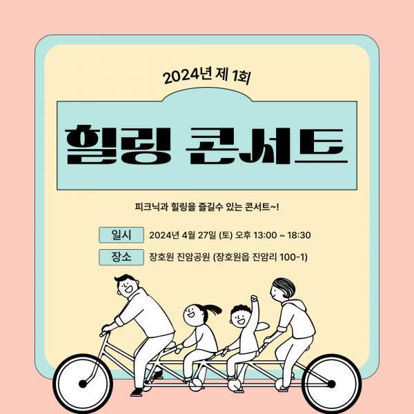 올해 처음 선보이는 힐링콘서트는 장호원 주민자치회에서 준비한 올해 첫 행사로 봄의 기운을 만끽할 수 있도록 꽃이 만발한 진암공원일대에서 진행한다.