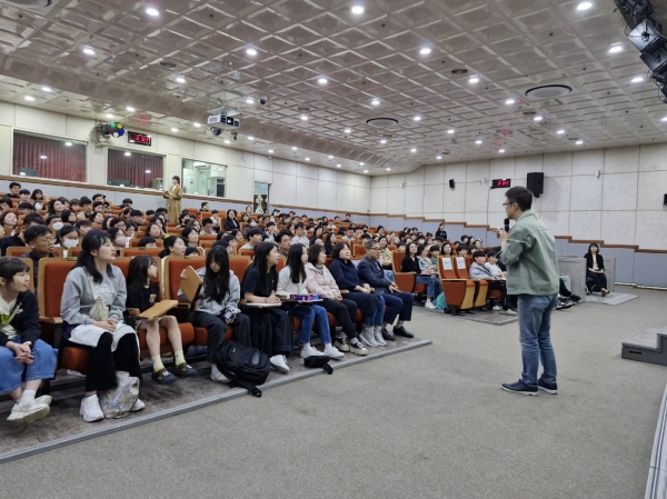 이날 특강은 EBSi, 이투스에서의 한국사 강의, 어쩌다 어른, 벌거벗은 세계사 등 방송을 통해 유명한 한국사 큰별샘 최태성 강사가 ‘한 번의 인생, 어떻게 살 것인가’라는 주제로 진행했다.