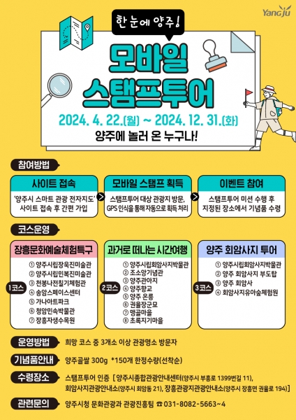 [금요저널] 양주시가 오는 22일부터 2024년 양주시스마트관광전자지도‘한 눈에 양주’ 모바일 스탬프 투어를 운영한다.