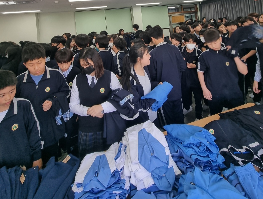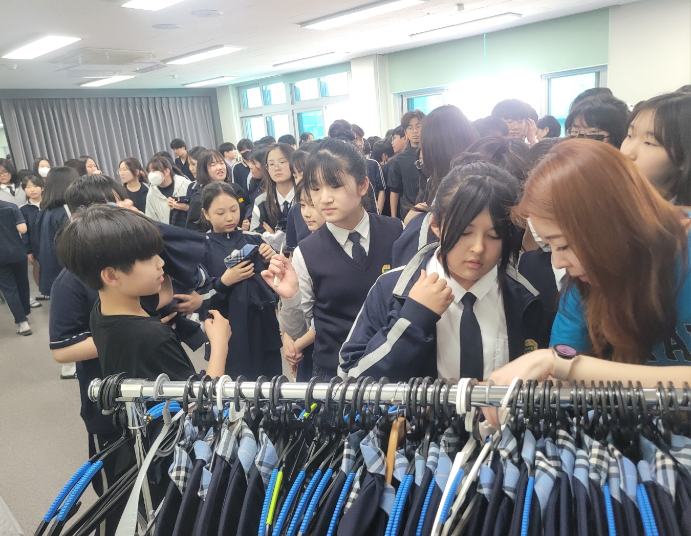 학생들은 쉬는 시간과 점심시간, 방과 후 시간을 활용하여 교복 나눔 행사장에 모여 서로에게 맞는 교복을 고르며 즐거운 시간을 보냈다.