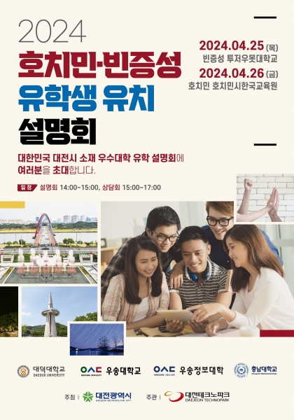[금요저널] 대전시는 25일부터 26일까지 지역 4개 대학과 함께 베트남 호치민 ·빈증성에서 현지 학생을 대상으로 유학생 유치설명회를 개최한다.