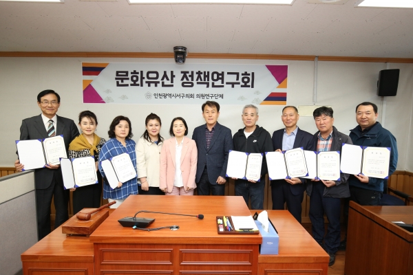 [금요저널] 인천 서구의회 의원연구단체인 ‘인천 서구 문화유산 정책연구회’는 지난 24일 자문위원을 위촉한 후 제1차 정기회의를 열어 연구활동계획에 대해 논의했다.