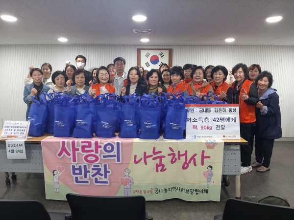 궁내동 위원장은 “어려운 이웃과 함께 하고 더불어 다함께 행복한 마을을 만들고 싶다”며 “참사랑나눔봉사단 위원들께 감사의 말씀을 드린다”고 말했다.
