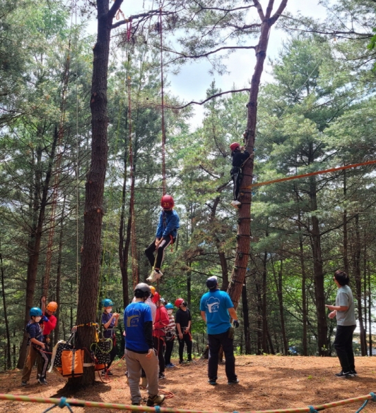 특히 트리클라이밍 체험은 전용 로프와 안장, 안전 보호 장비를 이용해 나무에 올라가 나무와 숲, 자연과의 일체감을 맛볼 수 있는 체험활동이다.