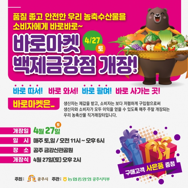 공주시, 충남 대표 직거래장터 ‘바로마켓 백제금강점’ 27일 개장
