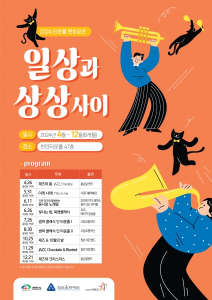 시는 올해 12월까지 ‘일상과 상상사이’라는 주제로 천안 타운홀에서 매월 1회 재즈, 교향악, 북콘서트 등 다양한 문화공연을 개최한다고 26일 밝혔다.
