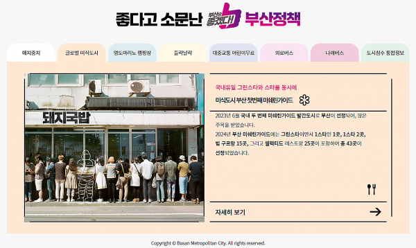 김재학 시 대변인은 “우리시가 전국 최초로 시행하는 선도정책과 함께 시민이 만족해 우수하다고 생각하지만 상대적으로 덜 알려진 선도·우수정책들을 많이 발굴하고 적극 홍보해 전국 어디에서나 '부산은 좋겠다'라는 말이 나올 수 있게 하겠다”며 “각 정책에 대한 자세한 정보는 시 누리집에서 확인할 수 있으며 ‘부산은 좋겠다’ 캠페인에 대한 시민 여러분의 많은 관심과 성원을 부탁드린다”고 전했다.