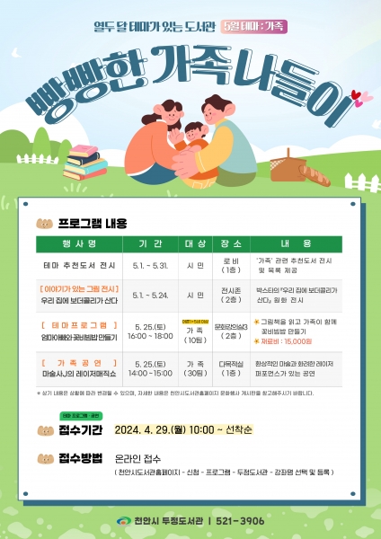 두정도서관 5월 테마 ‘가족’ 행사 운영
