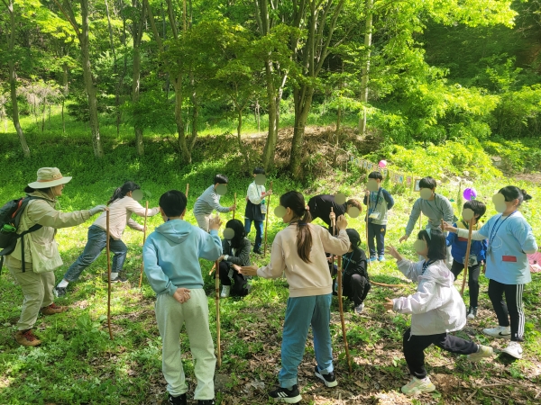주요 프로그램은 △자연물 빙고 놀이 △숲 밧줄 놀이 △풀꽃 엽서 만들기 △협동 컵 쌓기 △생명 지팡이 놀이 △소감 나누기 등 자연물을 이용한 다양한 놀이 활동으로 참가자들에게 높은 호응을 얻었다.