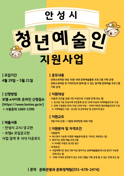 자세한 사항은 안성시청 홈페이지 또는 보탬e사이트 또는 문화관광과 문화정책팀으로 문의하면 된다.