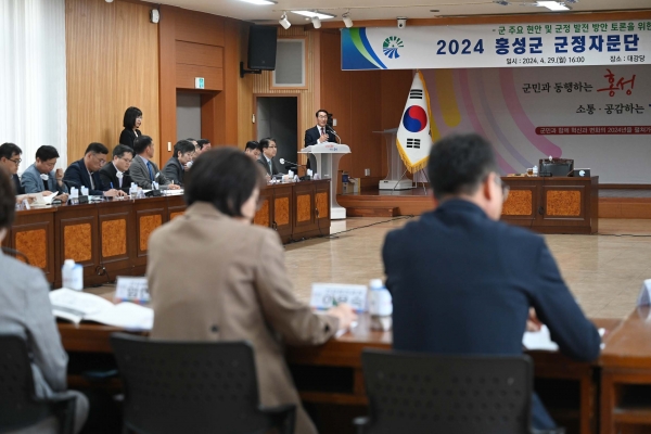 [금요저널] 홍성군은 29일 군청 대강당에서 ‘2024 군정자문단 전체회의’를 개최하고 시대 변화에 효과적으로 대응하기 위한 정책네트워크 기능 강화방안을 집중 논의했다.