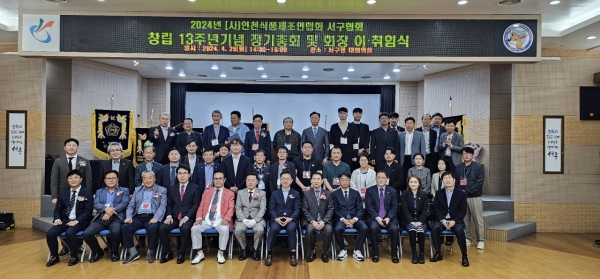 [금요저널] ‘인천광역시 식품제조연합회 서구협회’는 지난 29일 서구청 대회의실에서 창립 13주년 기념 정기총회 및 회장 이취임식을 개최했다.