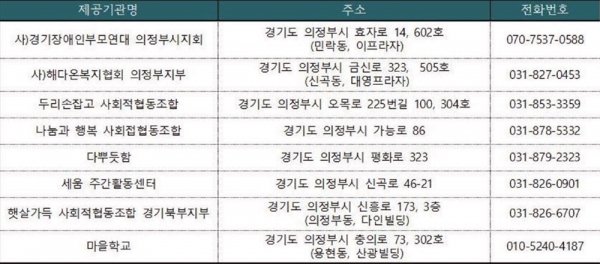 특히 시는 지난 3월 발달장애인 활동서비스 제공기관 2개소를 추가 지정해 사)경기장애인 부모연대 의정부시지회 등 총 8개소에서 332명에게 수준·능력별 프로그램을 제공하고 있다.
