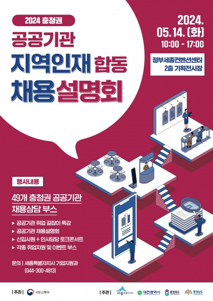 [금요저널] 대전시는 5월 14일 세종컨벤션센터 2층 기획전시장에서 충청권 시·도와 합동으로‘2024년 충청권 공공기관 지역인재 합동채용설명회’를 개최한다.