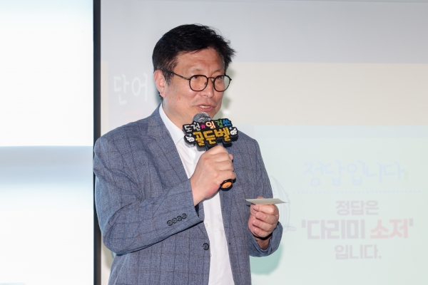 도성훈 교육감은 이날 ‘도전 읽걷쓰 골든벨’ 퀴즈대회에서 어린이도서관의 대출 1위 책인 ‘이상한 과자 가게 전천당’ 내용을 토대로 패자부활전 문제를 출제했다.