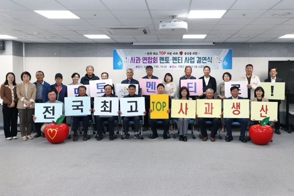 군에 따르면 지난 7일 전국 최고의 가평사과 생산을 위해 서태원 군수와 가평사과연합회 회원 등이 참석한 가운데 ‘전국 최고 가평사과 생산을 위한 멘토·멘티 결연식’을 개최했다.