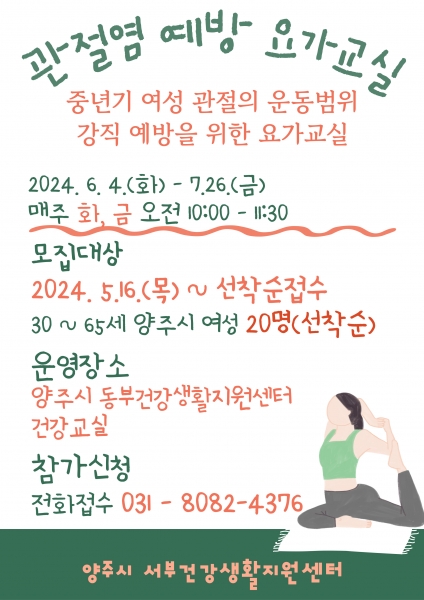 양주시, ‘2024년 관절염 예방 요가 교실’ 1기 참여자ⵈ 오는 16일부터 선착순 모집