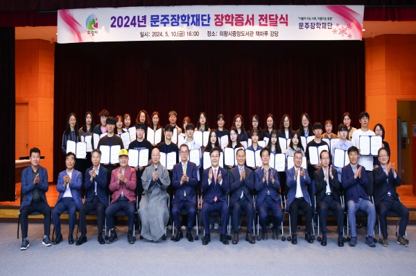 문주장학재단 장학금은 의왕시 관내 고등학교를 졸업한 2024년 성적우수 대학 신입생 40명에게 500만원씩 총 2억원을 지급했다.