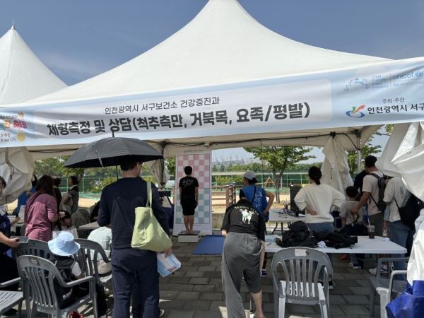 [금요저널] 인천 서구보건소는 지난 4일 어린이날을 맞이해 개최한 제7회 ‘아동이 주인공인 행복한 축제’에서 아동·청소년의 신체 불균형 발견과 바른체형 형성을 위한 ‘체형측정 및 상담’ 부스를 운영했다고 밝혔다.