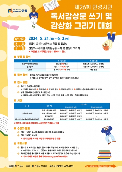 ‘제26회 안성시민 독서감상문 쓰기 및 감상화 그리기 대회’개최 예정