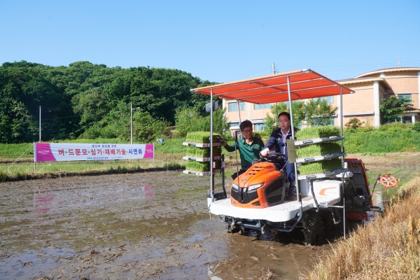 또한, 시는 올해 경기도농업기술원에서 사업비를 80백 만원 지원받아 드문모 이앙기, 전용 모판 상자, 생력 농자재 등을 벼 23.2ha 재배단지인 남면 매곡 구암리 시범단지에 투입했다고 설명했다.