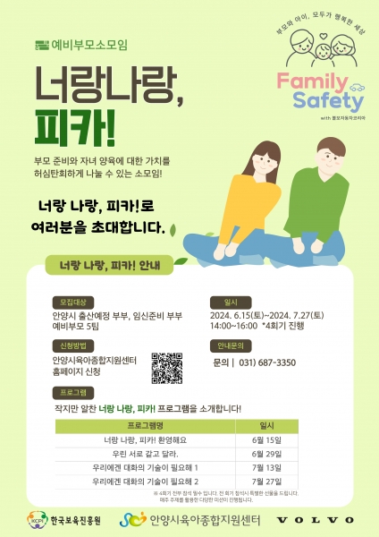 [금요저널] 안양시는 안양시육아종합지원센터가 관내 예비부모, 영유아 자녀를 둔 부모를 대상으로 볼보자동차코리아-한국보육진흥원의 가족참여형 부모교육사업 ‘라곰, 패밀리’를 진행한다고 16일 밝혔다.