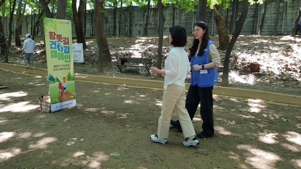 건강 캠페인에서는 ▲1:1 걷기 자세 지도 ▲황톳길 이용법 ▲근린공원운동기구 안전하게 이용하는 방법 ▲운동 전·후 스트레칭 등 운동처방사의 전문운동지도를 진행한다.