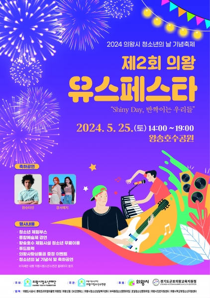 [금요저널] 의왕시청소년재단은 제2회 의왕Youth Festa ‘Shiny Day, 반짝이는 우리들’을 5월 25일 왕송호수공원에서 개최한다고 17일 밝혔다.
