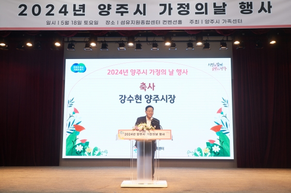 [금요저널] 양주시는 5월 가정의 날을 맞아 양주시가족센터에서 지난 18일 경기섬유종합지원센터 컨벤션홀에서 ‘가치있는 가족, 함께 우리 가족’이라는 주제로 350여명의 양주시 가족들이 참여한 가운데 ‘2024년 양주시 가정의 날 행사’를 개최했다고 밝혔다.