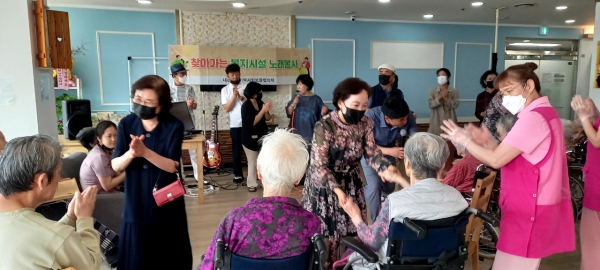 [금요저널] 의왕시 내손1동 지역사회보장협의체는 지난 22일 관내 요양시설인 ‘건강재활요양원’을 방문해 노래 재능기부 행사를 진행했다.