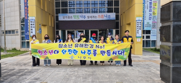 나주시는 전라남도, 경찰서 청소년유해환경감시단과 합동으로 청소년보호법 위반 사항 점검 및 단속, 청소년 보호 관련 유인물 및 청소년 유해표시 준수 스티커 부착 등 정화 활동을 진행했다.